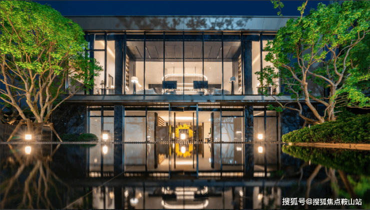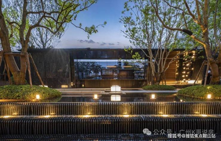 夜幕降临时,富有层次感的氛围灯,零星点缀,映照在潺潺跌水、安哥拉黑石台上,又给人一种高贵又内敛的感觉。