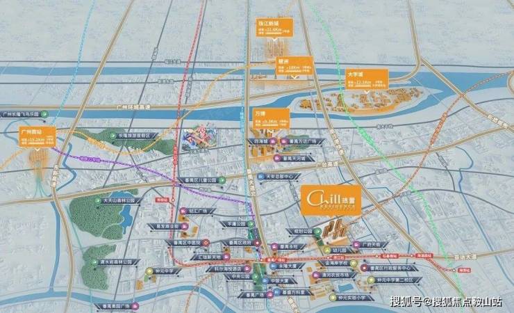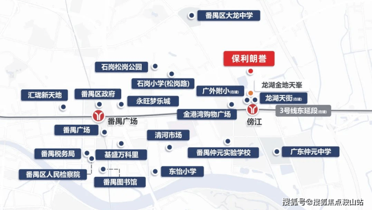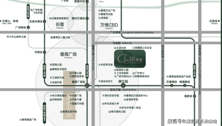 与3号线东延段傍江站直线距离约500米(已开通),从小区出发做地铁去番禺广场只需要一个站,乘坐地铁前往珠江新城也不需要换乘。