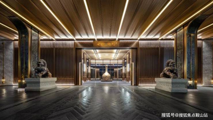 在立面每个柱身上,同一个线条的不同位置上,用不同的金属、不同的质感或光泽构筑独特的细节,中式纹样细节充盈整个立面。