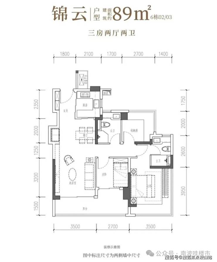 面积:88㎡三房两卫