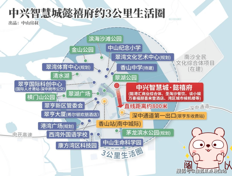 项目位于深中通道西登陆点、马鞍岛翠湖公园板块,3公里内,文化艺术中心、翠湾体育中心、滨海沙滩公园、中山纪念小学、香山中学等生活和休闲配套环绕。