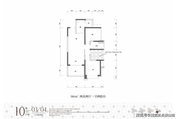 10栋03/04户型,建面约86㎡,原始结构是两房两厅一卫两阳台,奇数层和偶数层都是卧室出阳台,主卧与公卫中间有一块镂空的地方,搭板的话改个三房没啥问题。