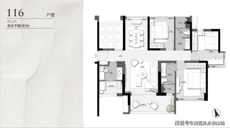 面积:86㎡3房1卫,109-118㎡4房2卫,136-137㎡4+1房2卫176-5房2卫