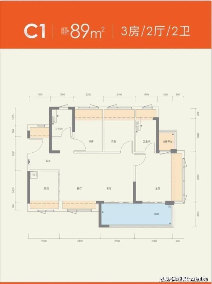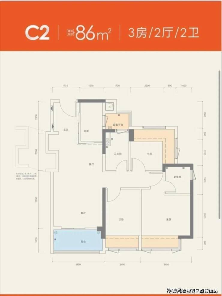 建面约86㎡3房2卫