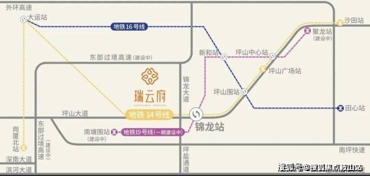 项目距离14号地铁线“锦龙站”约1.3公里,步行需要20分钟,该线路是从坪山沙田开往福田岗夏北的快速线,设计时速120公里,4站到大运,9站到布吉,10站到罗湖,12站到福田岗厦北,用时43分钟。