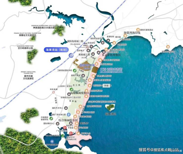 ◎通达交通属性——距离海岸线约 2 公里,距离海南环岛高速路约 4 公里,通往高铁站及机场都十分便利,未来还规划了海棠湾高铁站,建成后出行更加便利。