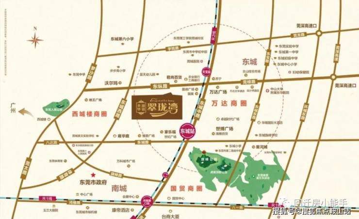 丰华珑远翠珑湾是莞城区目前唯一一个在售盘,位于2号线东城站附近,号称距离地铁最近的城区盘,亲测步行10分钟可达。