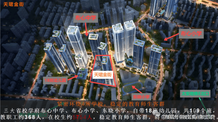 三大省校学府布心中学、布心小学、东晓小学,自带18班幼儿园,共109个班,教职工约368人,在校生约5754人,稳定教育师生客群,将带来高频次商业消费。