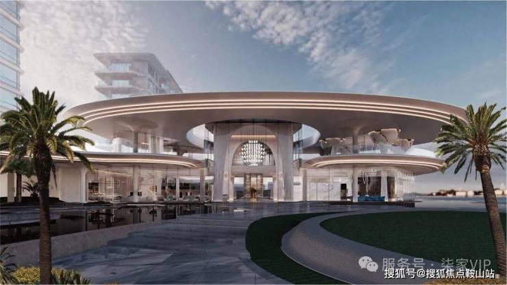 建筑以“超流体立面”呼应海浪肌理,通过悬挑阳台、底层架空消解建筑与水岸的边界,搭配 270° 观景阳台、云端泳池、环形瞰海露台等设计,让河景、海景与生活空间深度交融,成就“外揽海之豪迈,内藏河之幽静”的谧境岛居。