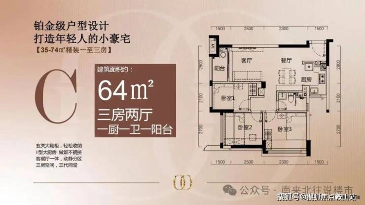 🔺A户型:建筑面积约35㎡,精致一房,百变阳台创意空间