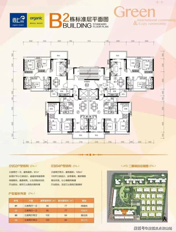 洋房【户型优点】:两梯四户、方正实用、高层、户户朝南