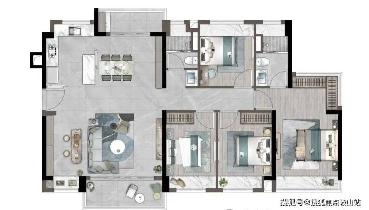 89㎡丨三房两厅两卫; LDKG一体化设计;U型厨房;约6米双面宽超大景观阳台;独立卧室带独立卫浴;主题设计儿童房