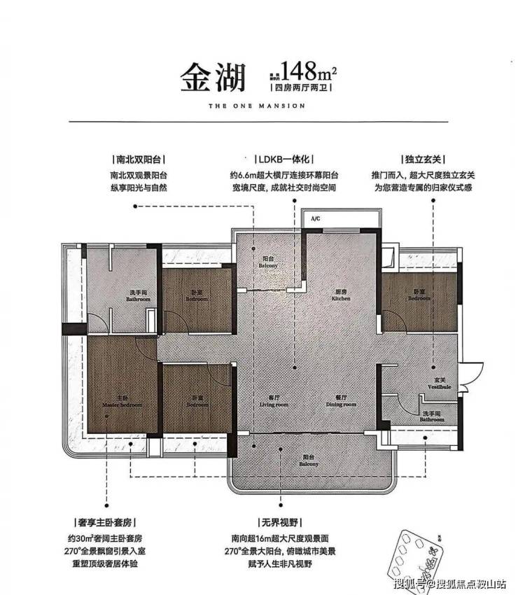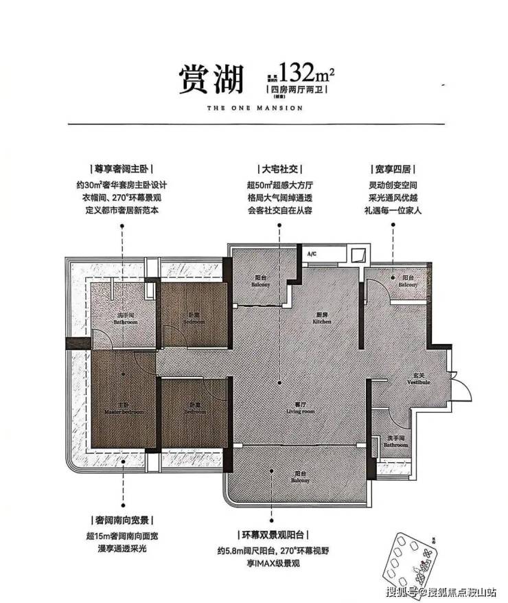 ▫️132-148㎡楼王户型:270°弧形玻璃幕墙,金山湖景尽收眼底!