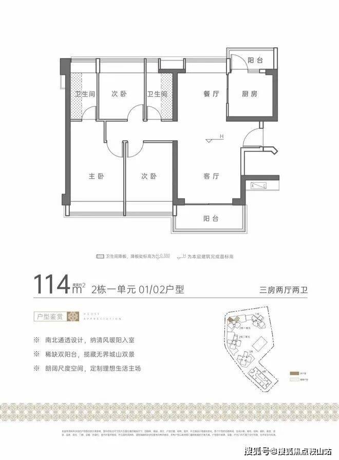 →归心生活:建面约110-133㎡城山双景,南北通透、稀缺双阳台,全系品牌精装,非凡品质臻享