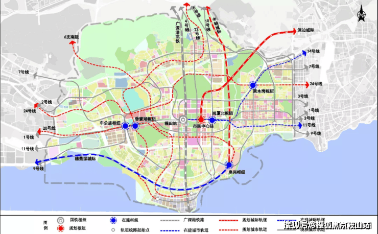 →三轨交汇:地铁9号/4号/22号线(在建中)三轨交汇,直距约300米上梅林站;22号线开通后,直抵香蜜湖