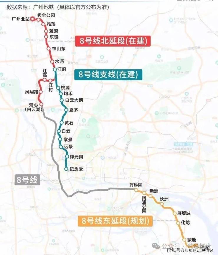 双地铁旁,紧邻在建地铁8号线北延段雅源站(距离项目500米),往北三站接驳广州北站TOD实现空铁联动,往南经8号线北延段支线直达越秀纪念堂站,享受全市一小时生活圈,距离项目一站之隔的雅瑶站点已进入施工阶段,距离18号线北延段凤凰南路站2公里 ,5站直达天河。 未来通车后,从项目出发,往北3站到广州北站,再接驳到白云机场,实现空铁联动。