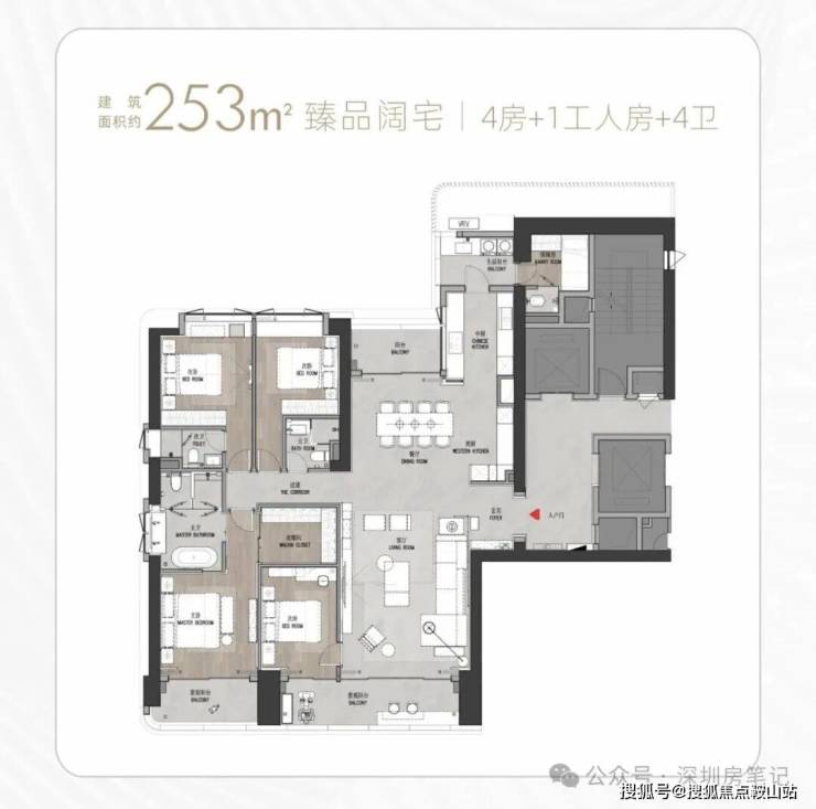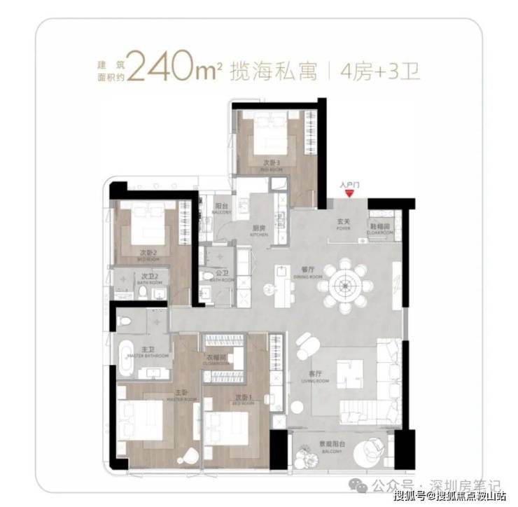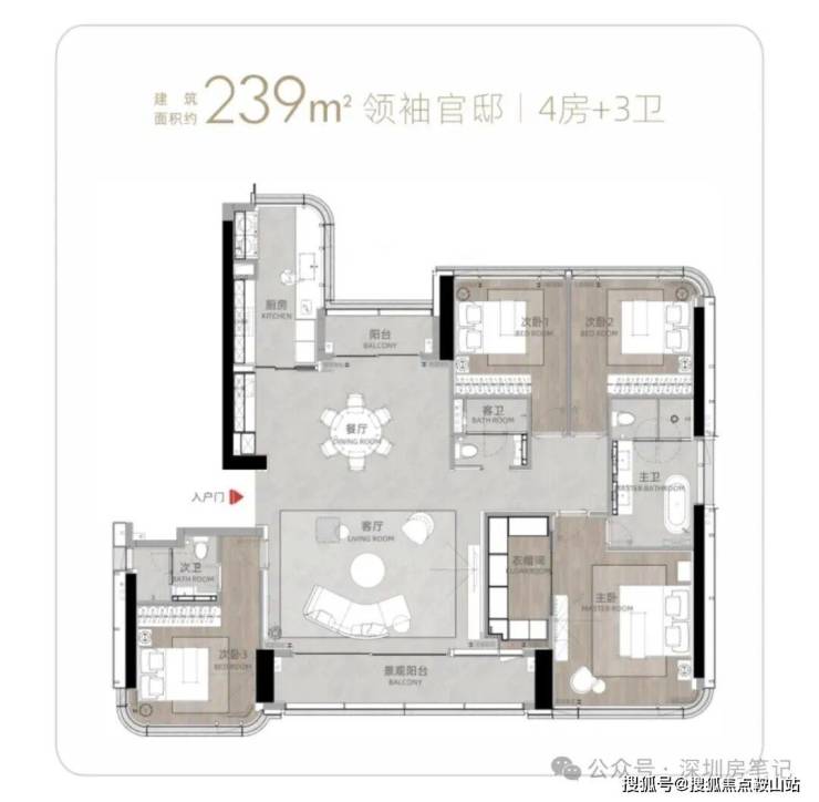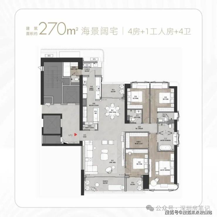 T9/T10栋:总高53层,4梯3户,183-270㎡4房及270㎡复式。