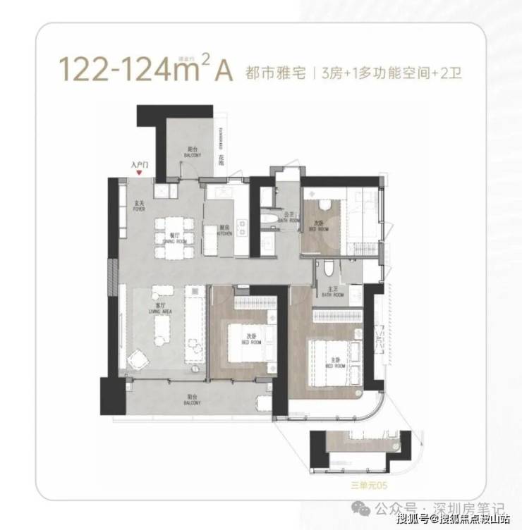 T5栋已经取证,85套111-127㎡三房和3+1房。最新折扣已出,04户型95折,其余户型一律约93折,折后最低970万起。
