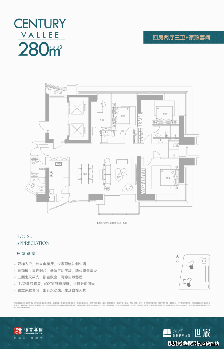 建面约280㎡ 四房两厅三卫+家政套间