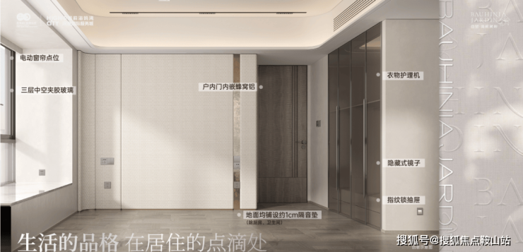 人性化品质精装交付、隐藏式音响接口预留(背景音乐)、预留电动窗帘电源;