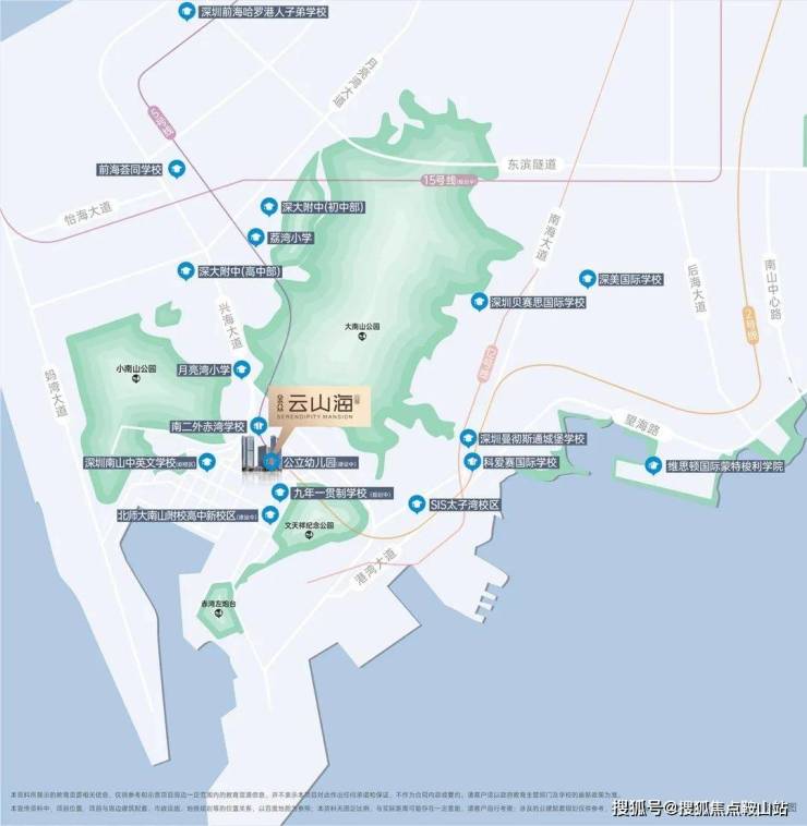 🔘周边教育信息介绍:社区自带双18班幼儿园、直线距离约280米公办九年一贯制南二外赤湾学校、九年一贯制学校(规划中)、深大附中高中部、北师大南山附校高中新校区(即市第三十高级中学,建设中)。