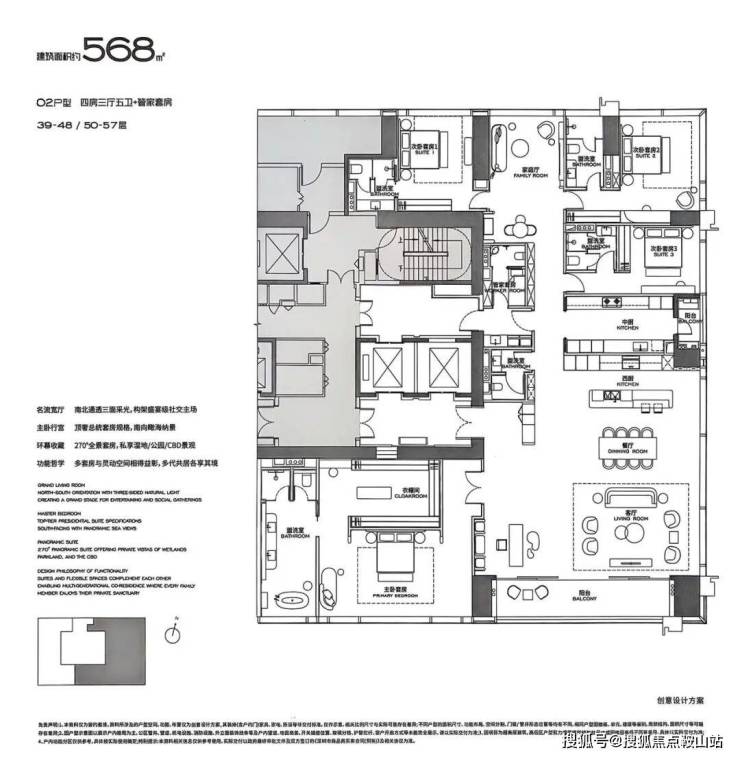 58层5梯1户,面积1000平米,使用率73%,含赠送76%,(不含电梯厅,电梯厅套内面积在15~20㎡左右),首批推出来的含装修费,后期装修是要算装修费。