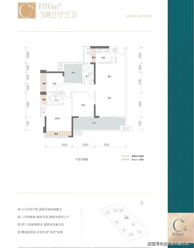 户型优势:赠送约12方,全南户型,拥有6.3米超宽阳台