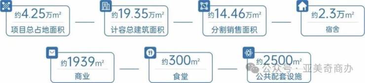 园内规划合理,配备约2.3万㎡宿舍、约1939㎡商业、约300㎡食堂及约2500平方米公交首末站等公共配套设施,还设有企业服务中心、直播空间等产业配套。