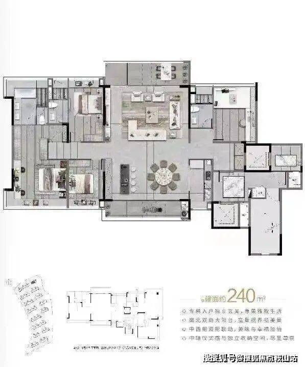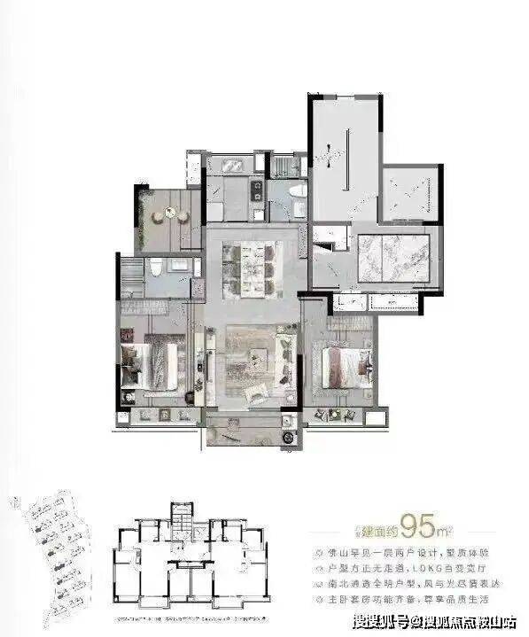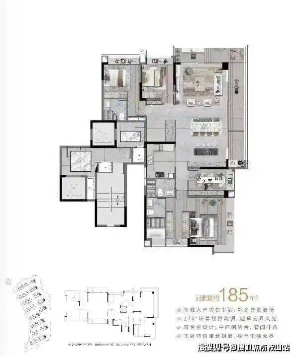 项目户型涵盖建面约95-240平方米,设计多样化,满足三至五口家庭不同居住需求。每户均采用一层两户布局,保障私密性与舒适性。空间布局合理,南北通透设计保证自然采光与通风效果,景观阳台延伸室内空间视野,最大化湖景享受。厨房、餐厅及客厅区域规划合理,提高生活便利性和互动性。精致户型结合现代美学理念,实现空间灵动与视觉美感的统一,为高端湖居生活提供优质住宅体验。
