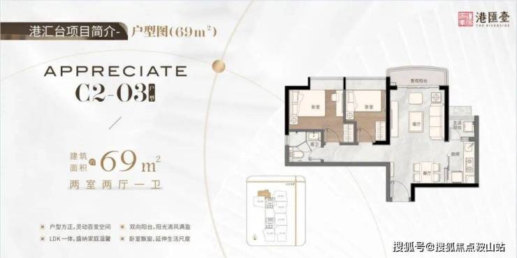 69㎡双阳台两房两厅一卫,户型方正,灵动百变空间,LDK一体,盛纳家庭温馨,双向阳台,阳光清风,视野开阔,全飘窗设计,增加室内利用空间