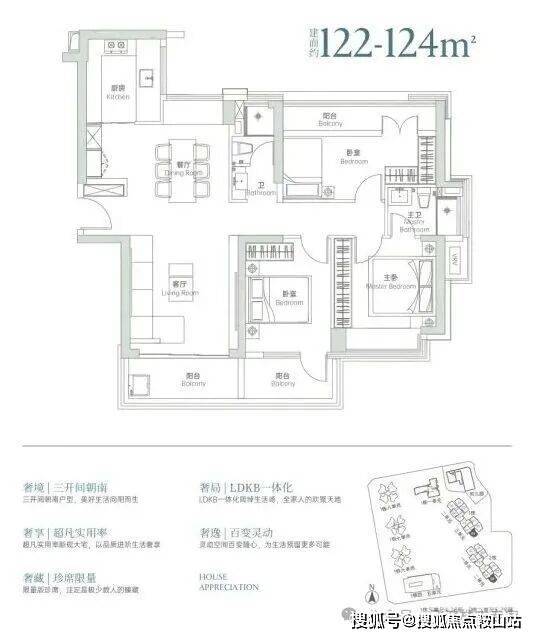 主力户型配备了“弹性方厅+环幕主卧+三面采光”的设计,不仅空间利用率高,居住舒适度也得到显著提升。