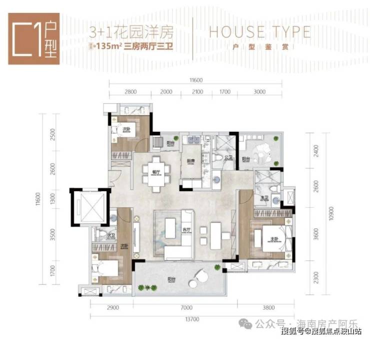 必买价值八【优享户型】:约108㎡3+1纯板房,明厨明卫双阳台,全家均享独立度假空间。