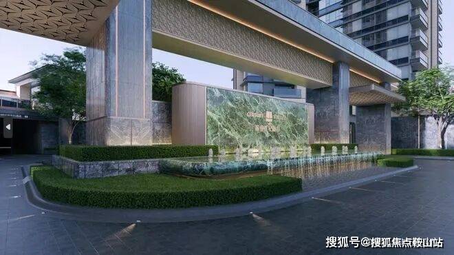 ②门仪:约70m宽奢阔主入口,绿奢石照壁、天然花岗岩门头