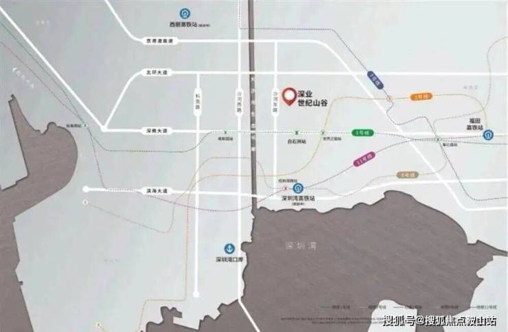 项目位于深湾创新走廊核心位置,沙河街道明珠街社区。四大总部基地环绕——往北是留仙洞总部基地、西丽湖国际科教城,往西是深圳湾高新区总部基地、后海总部基地,往南是深圳湾超级总部基地,往东是华侨城、福田CBD。白石洲550万㎡旧改正在推进,将建设400米国际超甲级写字楼群+40万㎡旗舰商业。