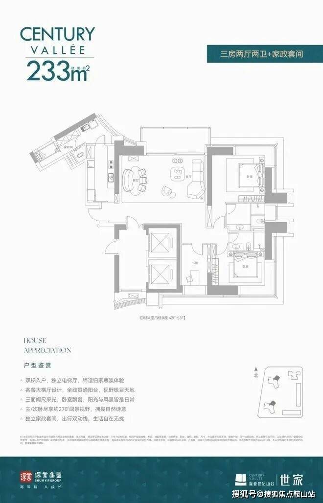 深业世纪山谷·世家在售约233/280/386㎡景观纯粹大平层住宅产品,约420-1080m²云端复式,3.5米奢阔层高、户户瞰景观非常震撼,中央公园的葱郁静谧、城市CBD的繁华璀璨,全部近在眼前。
