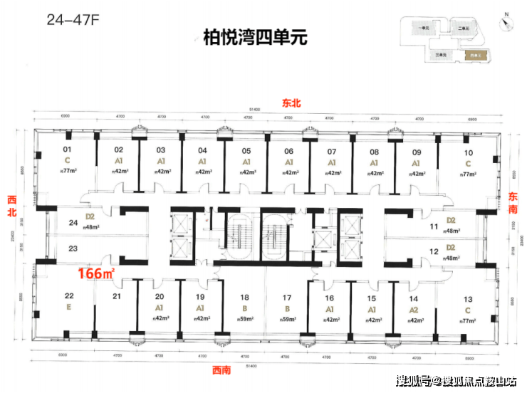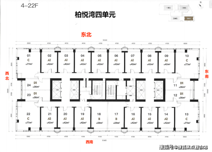 梯户比:公寓5梯24户 商办6梯20户