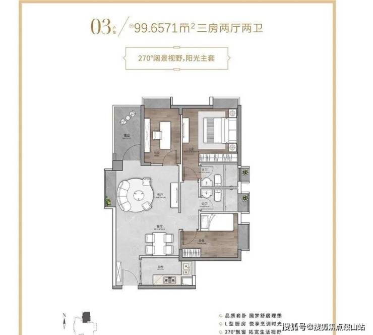 99㎡的 3 室 2 厅总价 368 万元左右,比 90㎡的多了个储物间,餐客厅连在一起更显通透,主卧带独立衣柜区,收纳空间更充足,适合家里东西比较多的家庭。