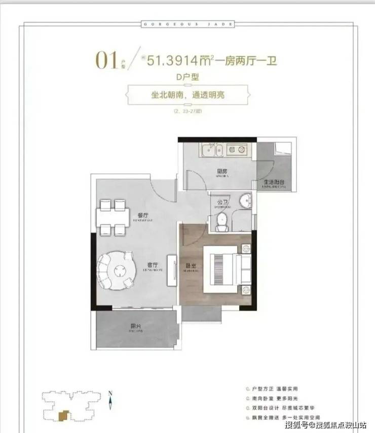 51㎡的 1 室 1 厅总价约 194 万元,户型方正,客厅带小阳台,适合单身人士或新婚夫妻过渡,日常打理起来很方便。