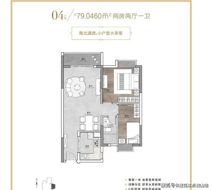 79㎡的 2 室 1 厅是刚需热门,总价大概 300 万元,得房率能到 82%,主卧带 270° 转角飘窗,采光不错,南向的朝向也让房间冬天更暖和,客厅和卧室的空间分配比较均衡,不会显得局促。