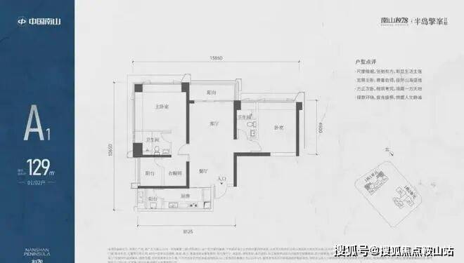 1栋一单元A1、A2户型:面积约为129㎡