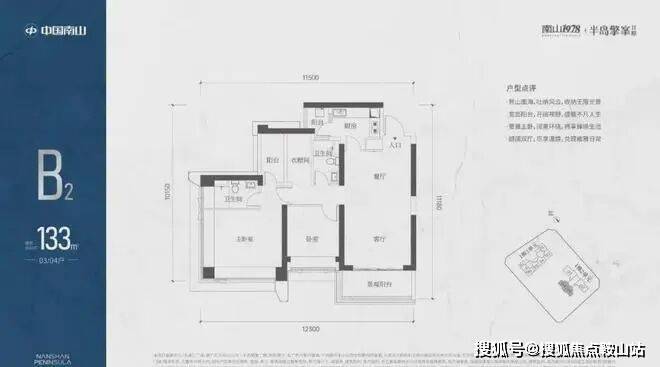 1栋二单元B2户型:面积约为133㎡