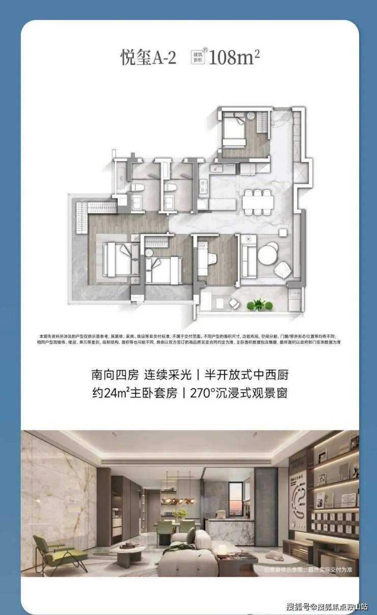 面积段:108-300㎡全南向四房,最小108㎡做到四房,实用率95%;