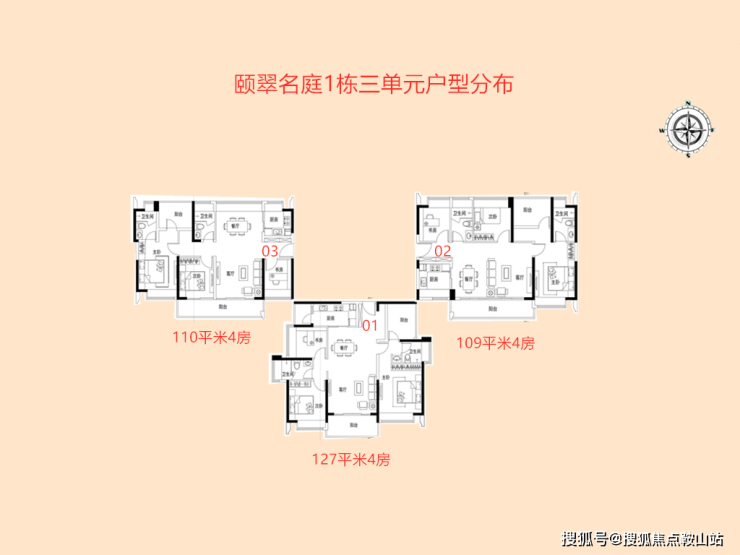 3栋跟1栋1单元户型相同,区别就是03和04户型的面积互相。总层高低一层。下面我就不重读解读3栋了。