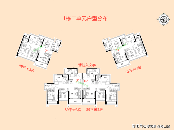 1栋2单元总层31层,2梯4户。面积都是89平米,有两种户型。01-02户型是朝南,03-04户型是南北通透。设计和布局,都非常合理。