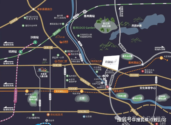 【交通配套】立体交通网络,畅行大湾区项目周边城市路网四通八达,距惠深沿海高速、出入口仅500m、惠大高速澳头出入口仅1000m,约30分钟可达龙岗中心城,约50分钟可达深圳罗湖福田,约40分钟可达惠州机场。约70分钟可达深圳宝安机场。距深圳东进战略主要交通线深圳地铁14号线沙田站10公里,全程仅25分钟。深圳地铁16号线田心站15公里,全程仅35分钟。项目直线距离3.5公里到惠州南站,2站深圳北站,3站直达香港,畅享三城生活,实现深港惠捷运化便捷生活;广深港高铁开通,惠州南站起68分钟直达香港西九龙;捷运化列车,深惠汕捷运正式开通。【教育配套】名校环绕,尊享优质教育资源 项目周边一站式教育配套,享十二年义务教育。早教:片区最优质的早教机构——万达宝贝王;幼儿园:西区中心幼儿园、海惠幼儿园、小区内部配套高端幼儿园;中小学:西区第一小学、北大培文大亚湾实验学校、广外附属外国语学校、澳头实验学校、金澳中英文学校;高中:省重点中学大亚湾第一中学。【成熟商业配套】繁华商圈,满足“一站式”生活购物需求雄踞深圳、惠阳、大亚湾3城中心,近享灿邦新天地(与项目仅一路之隔)、万达广场、COCOgarden、大润发、天虹、金沙世纪城等成熟大型商业综合体,繁华领地。【休闲配套】生态资源环绕,宜居生活片区森林资源丰富,项目紧邻亚公顶森林公园和大亚湾狮子山公园(在建,用地面积142万㎡),同时也邻近淡澳河、风田水库;大亚湾儿童公园(占地约38万㎡)、大亚湾板嶂岭森林公园、红树林湿地公园、河滩公园、虎头山公园、滨海公园、小桂绿道、大亚湾衙前绿道等多样化生态资源环绕。【医疗配套】完善的医疗卫生服务,为健康生活保驾护航项目距中山大学附属第一医院惠亚医院仅3公里,周边另有惠州市第六人民医院、大亚湾西区医院、大亚湾人民医院等,具备完善的医疗卫生服务机构,为居民的健康生活保驾护航。现象级豪宅 品质巅峰【顶级规划 精工品质】诚邀深圳湾壹号项目负责人叶林青大师,传承千年东方人居智慧,汲取世界科技智能硕果。260㎡叠墅洋房,创作大亚湾史上现象级豪宅,拔越湾区;低密度,充足采光,南北通透,大面宽全景观户型,缔造湾区时代封面,领衔城市人居。【景观户型,湾区稀缺臻品】现代日式禅宗园林,禅宗森活,栖心天地。诚邀台湾赖溢铣主创设计师倾情打造日式禅意园林,打造一种返璞归真的禅境家园。每一颗数目都是设计师亲自深入山中精挑细选,确保是最优美的姿态