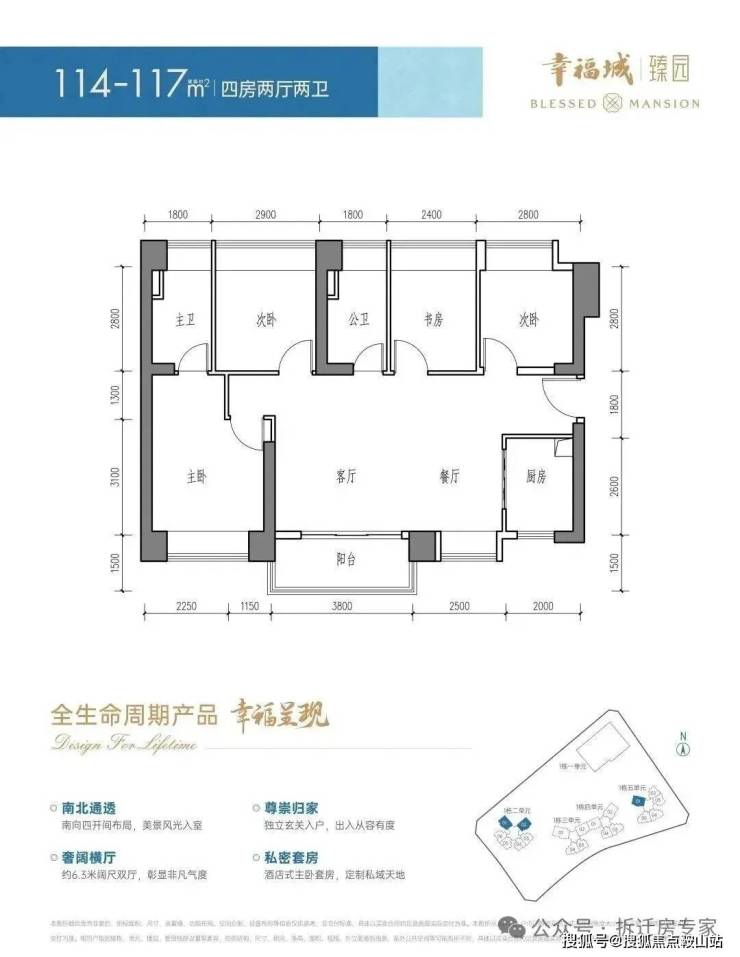 建面约114-117㎡4房2厅2卫(横厅)