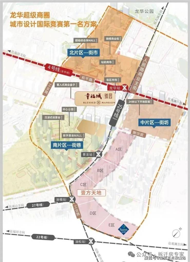 2022 年,龙华商业中心五大片区(北、中、东、南一、南二)均明确实施主体,开发建设稳步推进: