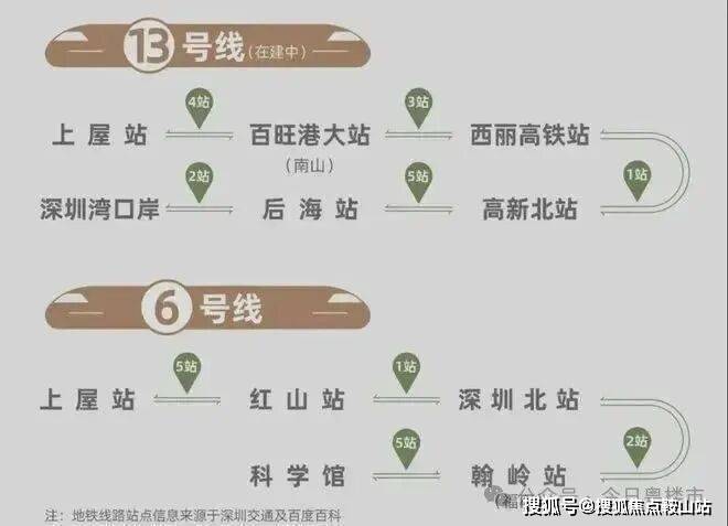 项目约直线距离400米抵达6号线、13号线(在建中)上屋站,6号线8站福田(翰岭站),13号线(建设中)4站南山、8站科技园(高新北站)。