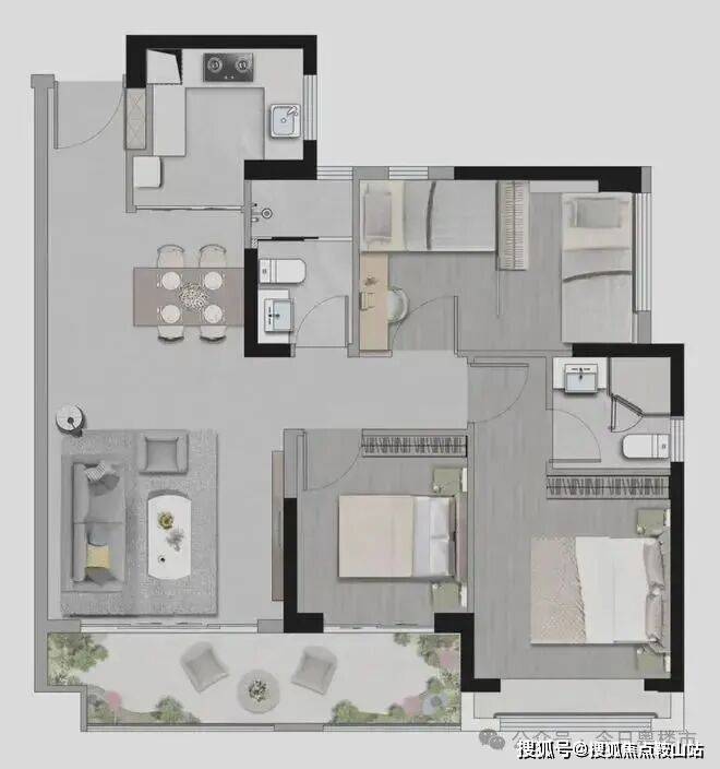 在户型产品方面,打造约72-140㎡ 的2-4房,品牌精装交付,欧派、科勒、老板、林内等国际装配,满足了刚需到改善的不同需求。