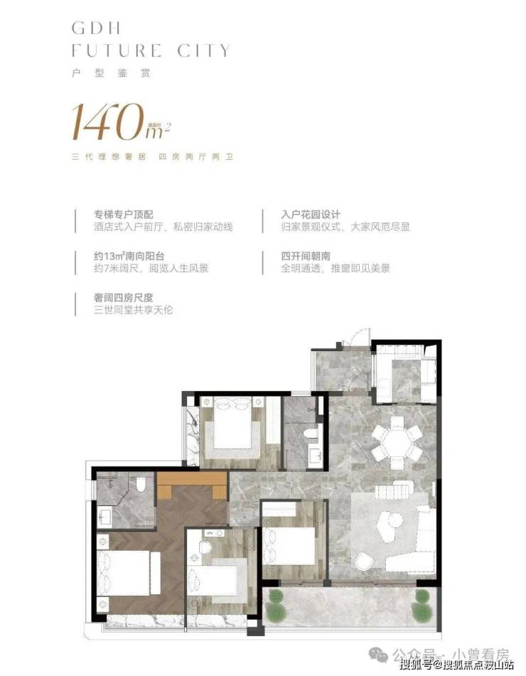 超20米连续采光面,户户均配大尺度面宽阳台。